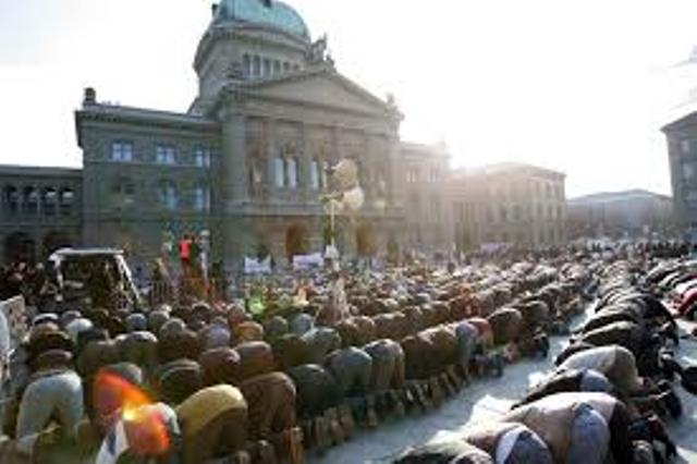 Shqiptaret me muslimanet në Zvicër falen edhe në sheshe, madje edhe para Konfederatës Helevtike