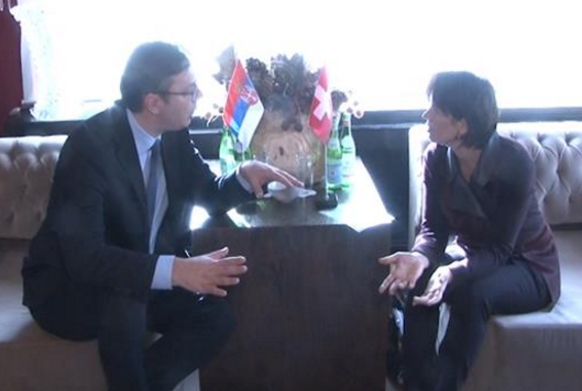 Presidentja e Zvicrës Doris Leuthard në Davos takon kryeministrin serb Vucic
