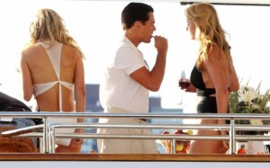 Leonardo DiCaprio mbi një yaht në New York gjatë filmimeve të filmit të tij të ri Martin Scorsese ‘Wolf of Wall Street’. DiCaprio gjatë xhirimeve të këtij film shifet se i ka pran dy bukuroshe bjonde, të cilat patjetër që do jenë pjesë e këtij filmi.
