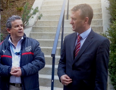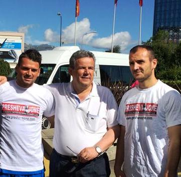 Editori i gazetës kombëtare “Bota Sot”, Xhevdet Mazrekaj (djathtas) dhe gazetari agjencise së lajmeve “Presheva Jonë” në selinë e FIFA-s