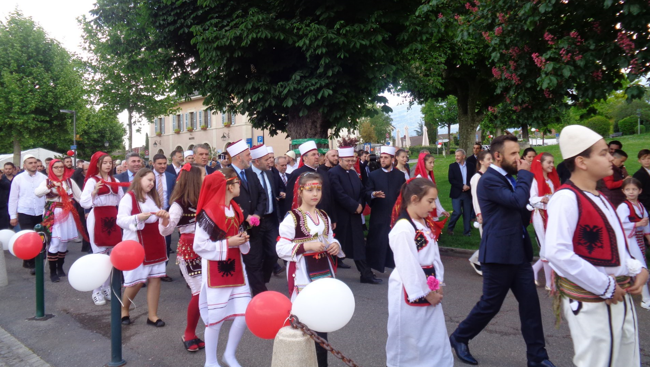 Perurimin i xhamise se re ne Gjenevë, pas disa recitaleve te Kuranit, nisi me hymnin kombëtar ku 12 imamë e hoxhallare nga Gjeneva, Zvicra, Kosova, Shqiperia, Maqedonia e Presheva bashke me qindra besimtare u griten ne kembe ne shenje rrespekti duke kenduar bashkarisht hymnin e flamurit tone kombëtar-kueqezi. Në fund per te pranshimit u recituan vargje Kuranore, u kenduan lahi dhe kenge shqipe me cifteli, per mysafiret u shtruar dreke.