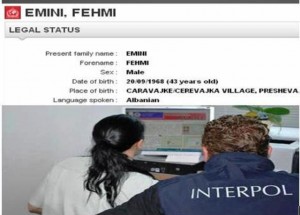 I këruar i radhës nga policia ndërkombëtare është Fehmi Emini nga (fsh.Caravajkë) Presheva (20/09/1968) , ka mesuar sot agjencia informative “Presheva Jonë” nga Interpol-it. Fehmi Emini 43 vjecar (1.71 meter, 70 kg) në fakt kerkohet nga një flet arresti i lëshura nga UNMIK-ut në Prishtinë (Under UNMIK mandate (kosovë), Supreme Court of Kosova In Prishtina).