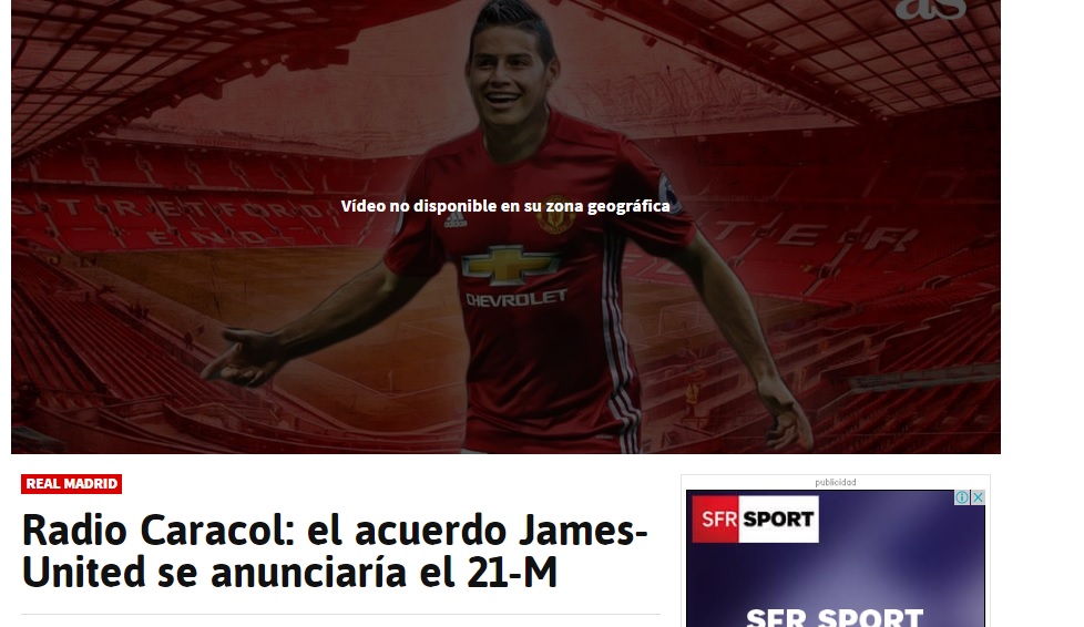 “Radio Caracol” nga Kolumbia raporton se James Rodriguez do të transferohet në Manchester United.