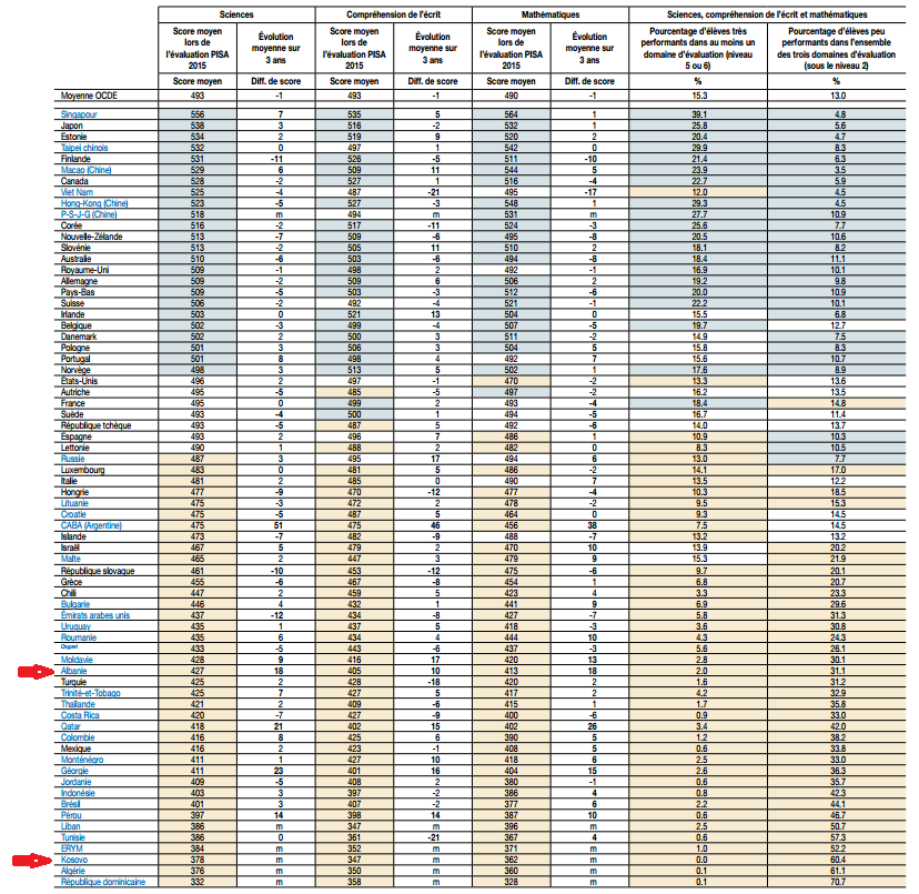 Në testin e OECD-së, kryhet 2015, përfshirë 540.000 studentë nga 73 vende ose rajone, dhe rezultatet e publikuara të martën sjellë pak a shumë orarin e pritur.