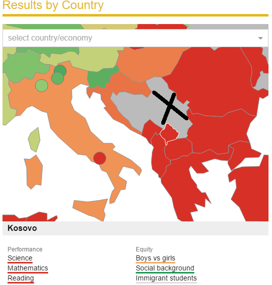 Kosova në fund, Serbia askund ne listën e PISA. Shkaku diskriminimi i arsimit shqip në Preshevë (lista+harta)