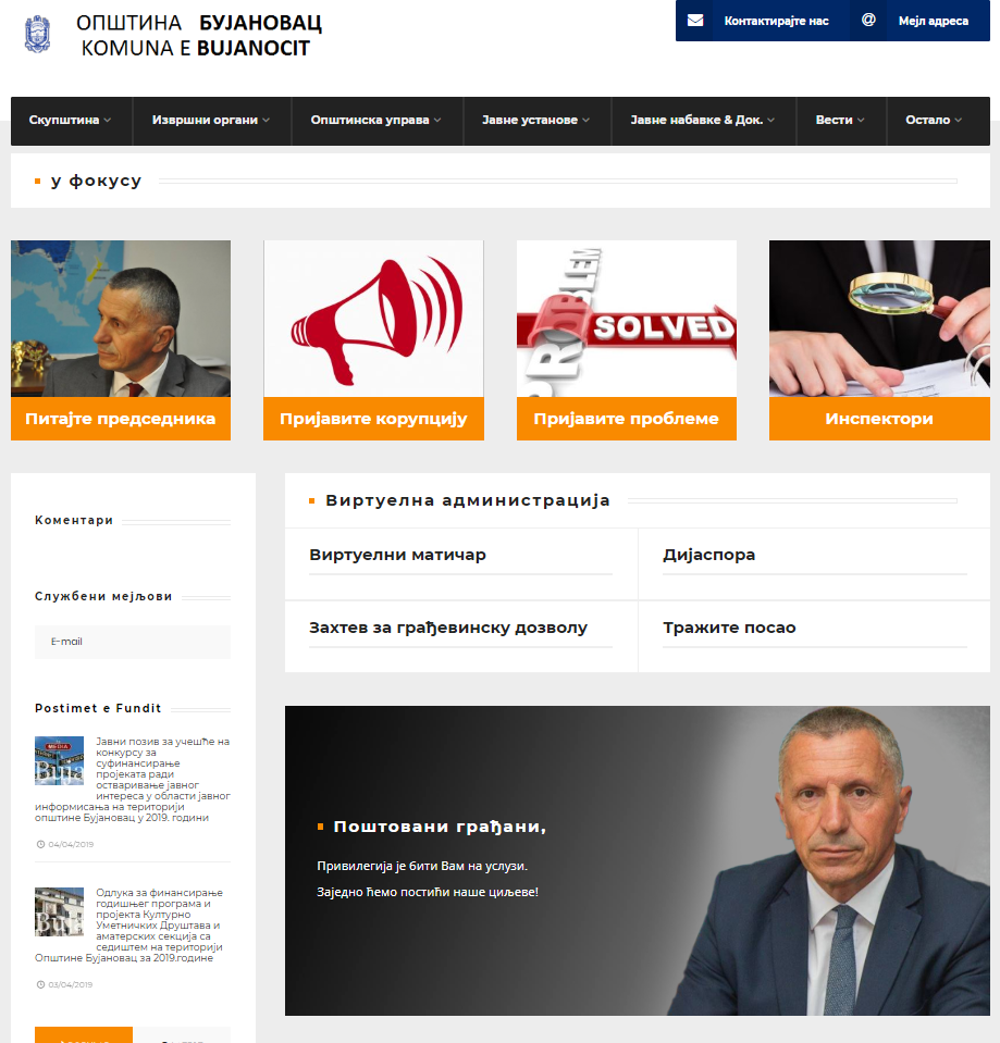 Natyrisht, ata ishin disa nga punonjësit e ngarkuar për shërbimin e faqes e akne bere “lesh”  thivi gjuhen shqipe, ne te ciolenb domnon serbishtja, në një komune mazhorance shqipare. Lajme të ndryshme, çështje për kryebashkiakun Shaip Kamberi, raportimi i problemeve, struktura e administratës komunale janë shkruar në gjuhën serbe. Megjithatë, kur përmenden e-mailet zyrtare, ka pasur një gabim, kështu që faqja është një fjalë që mund të jetë një kombinim i gjuhës serbo-shqipe. Por edhe kur e klikon ne shqip, te del serbisht ?!