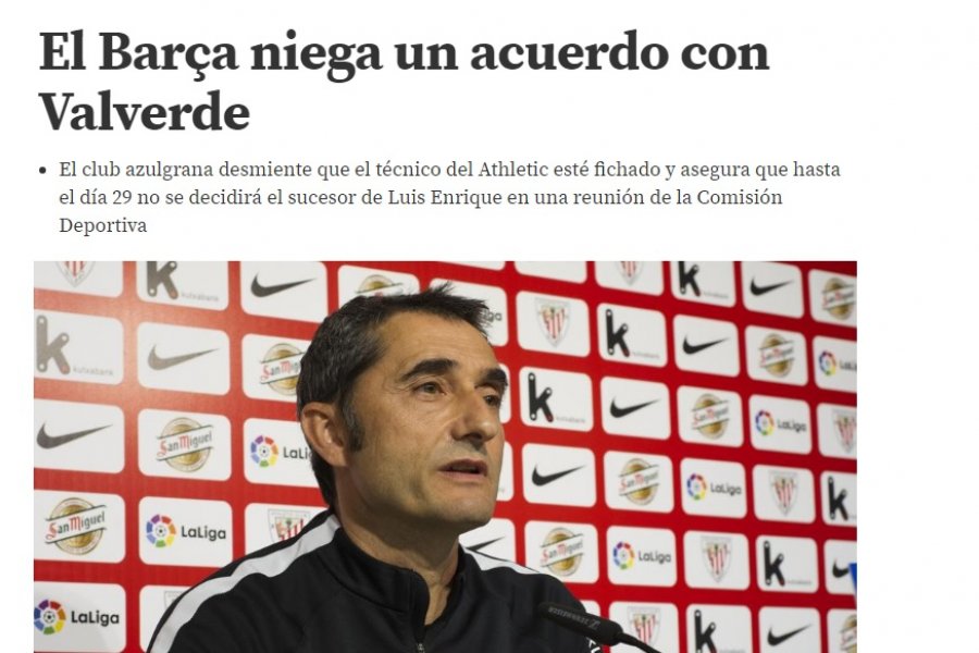 Në fund të sezonit zyrtarisht Barcelona do të prezantojë trajnerin e ri. Drejtues të Barcelonës kanë arritur marrëveshjen me trajnerin Ernesto Valverde por ai do të prezantohet pas finales të Copa del Rey për të respektuar punën e Luis Enriques, shkruan “Mundo Deportivo”, transmetonSYRI.net.