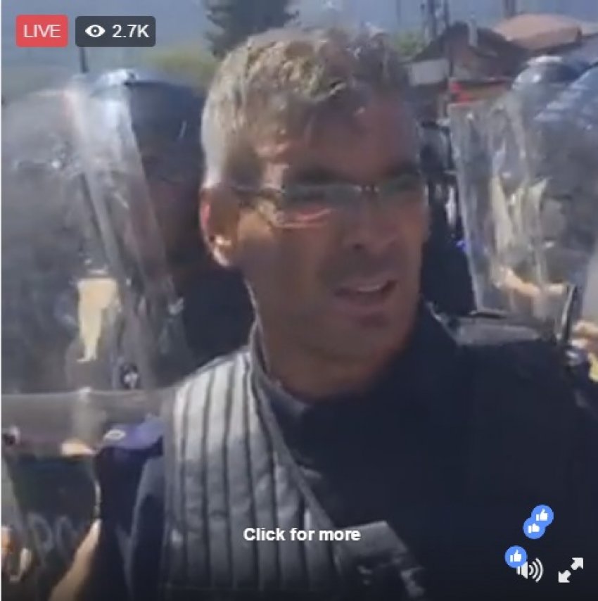 Duke dashur të arsyetohet dhe të bëj një marrëveshje me protestuesit, ky polic ka përdorur fjalë jo të përshtatshme.