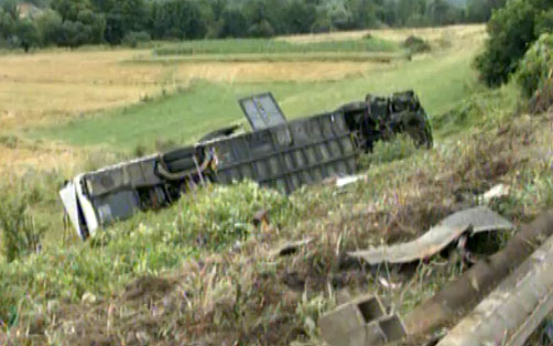 Preshevë, 2 maj -Nje autobusi i linjes Prishtine-Lubljane sot eshte larguar nga rruga duk u rrokullisur afer Kurshumlise. Nje udhetar nga Kosova qe i shpëtoi aksidentit ka njoftuar agjencine e lajmeve “Presheva Jone” se se paku 10-12 veta jane lenduar, gati te gjthe udhetaret ishin shqiptar, ata u lenduan kush me pak e kush me shume, disa prej tyre ju jane nenshtruar spitalit te afer.