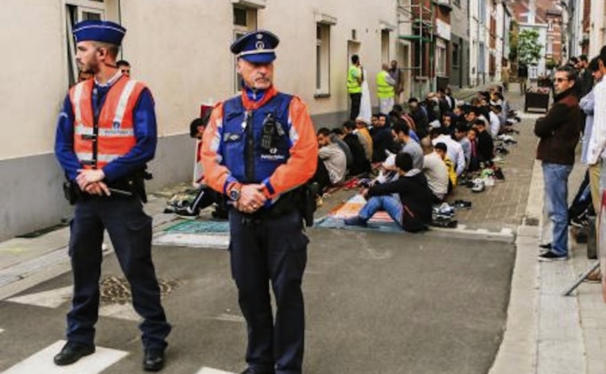 Shqiptaret me muslimanet në Zvicër, Belgjike sikur ne Tirane, falen edhe në sheshe, madje edhe nen perkujdesjen e policisë
