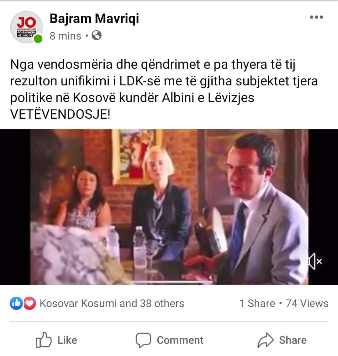 Zyrtarë të Lëvizjes Vetëvendosje kanë filluar ta shpërndajnë një video të fushatës zgjedhore ku shihet duke folur Albin Kurti për luftën kundër korrupsionit, duke u mundua kështu ta mbrojnē liderin e tyre i cili pas 45 ditësh qeverisje është drejt rrugës së shkarkimit me kërkesë të aleatit të tij, LDK.